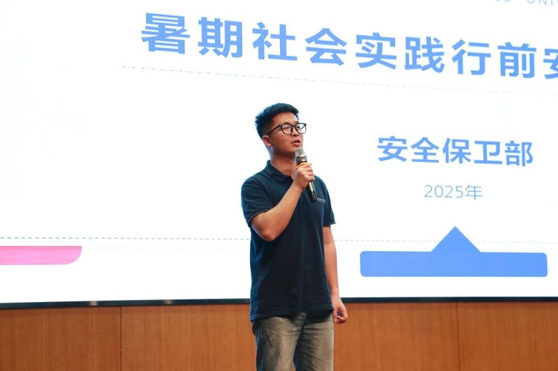 进入第二阶段行前培训,首先由学校安全保卫部张涛老师围绕交通安全、住宿安全、防电信网络诈骗、防溺水等多个方面进行暑期社会实践的安全教育培训,为同学们暑期社会实践的顺利开展筑牢安全防线。