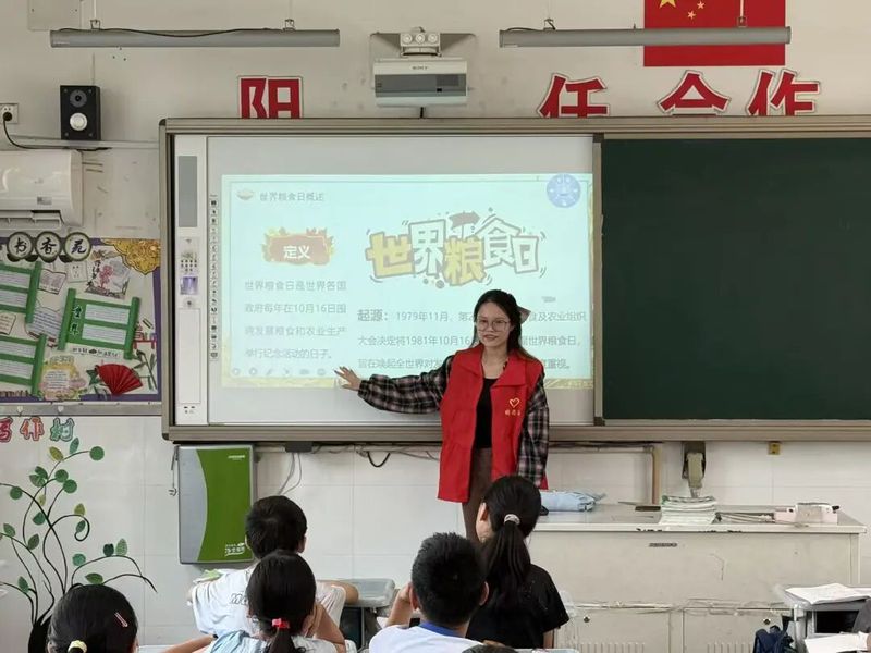 在享用美食的同时,粮食浪费问题同样也不可忽视。讲师们为同学们准备了一份详尽的粮食浪费问题带来的各个影响。从国内影响到国际影响,每一项都是我们需要关注的重点。特别强调了世界各国粮食日的活动举措以及我国在世界粮食日中角色与贡献等。通过互动问答和数据呈现,让同学们在轻松愉快的氛围中学习知识,提高自节约粮食的意识。