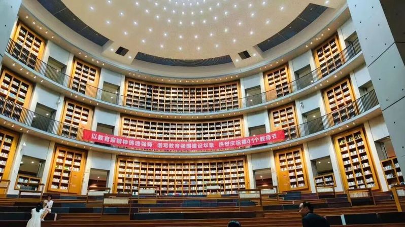 秋日的图书馆,有着独特的风景和明媚,几棵鸡爪槭正热烈绽放红色,与图书馆的玻璃幕墙相映,阳光透过玻璃洒进馆内,温暖而明亮。在这里,秋景不再是远处的风景,而是融入了学习生活的每一个瞬间,让读书成为了一场与自然的对话。